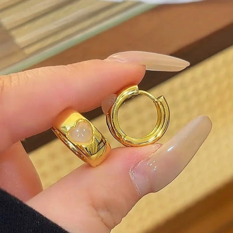 14K Gold-Plated Elegant Heart-Design Mother-Of-Pearl Hoop Earrings