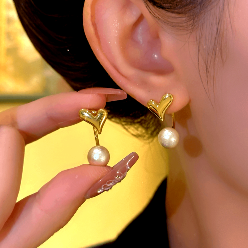 14K Gold-Plated Elegant Heart-Design Pearl Earrings