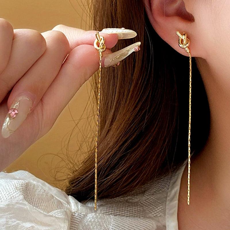 14K Gold-plated Elegant Knotted Threader Earrings