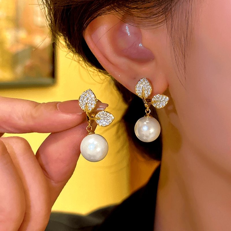 14K Gold-Plated Elegant Leaf Pearl Earrings