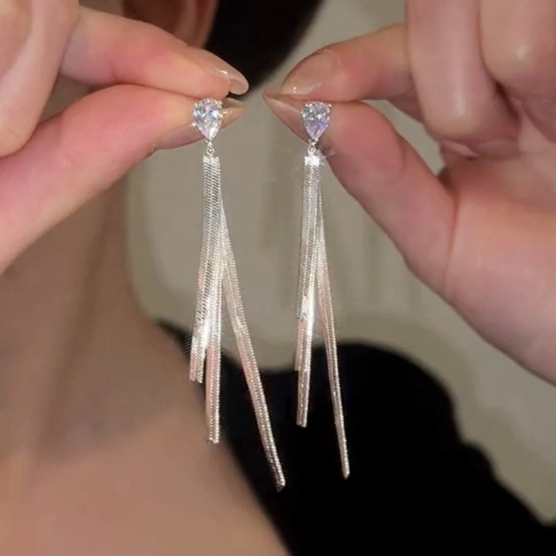 14K Gold-Plated Elegant Long Tassel Drop Earrings