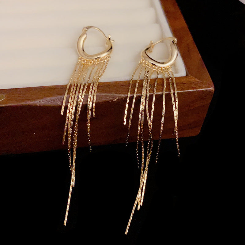 Made of Copper, with a 14k gold layer on it, which means it will last longer (at least 3 months).