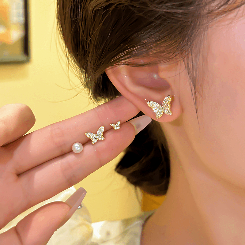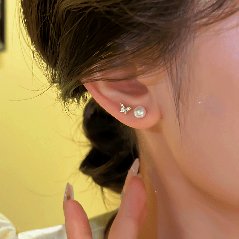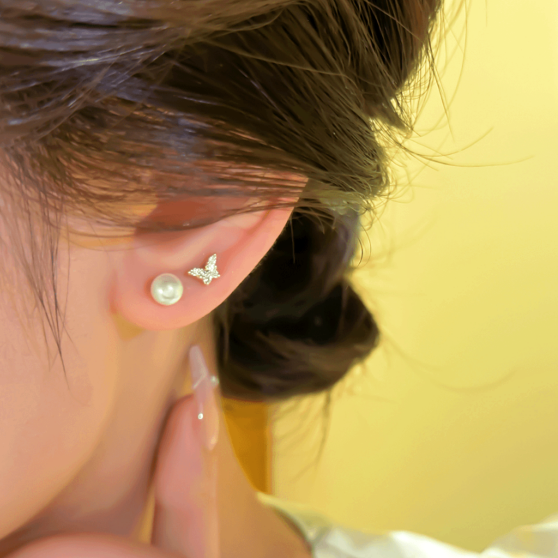 14K Gold-plated Elegant Multi-Wear Butterfly Shell Pearl Earrings