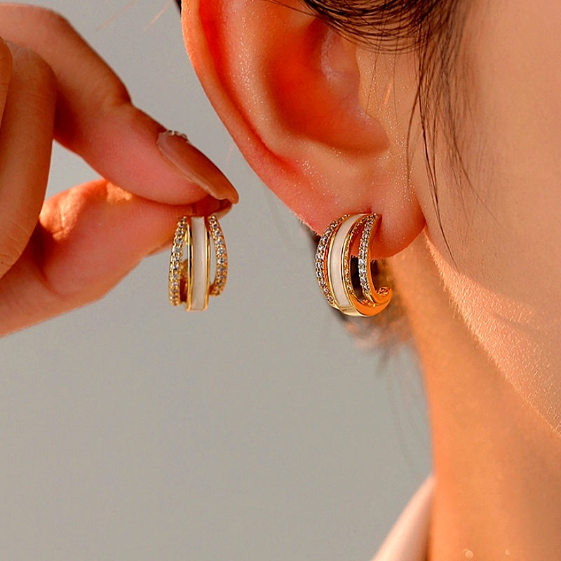14K Gold-Plated Elegant Oil-Drop Diamond Earrings
