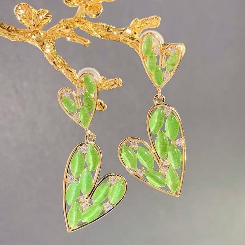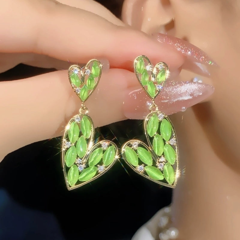 14K Gold-Plated Elegant Opal Love Heart Earrings