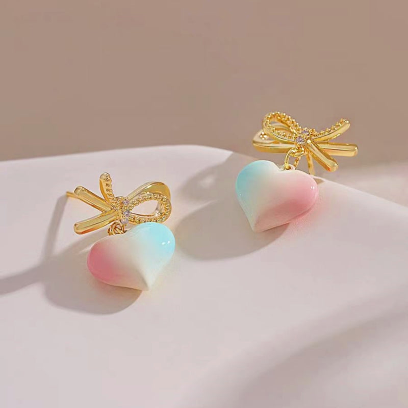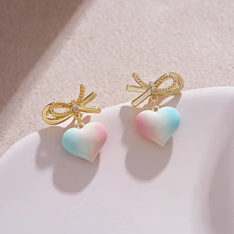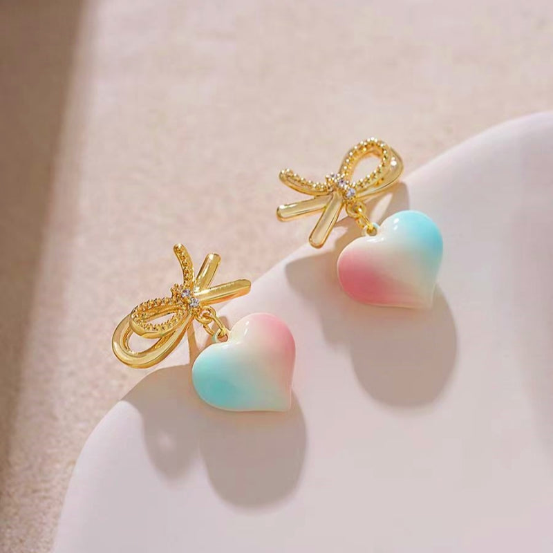 14K Gold-Plated Elegant Peach Heart-Shaped Bow Earrings
