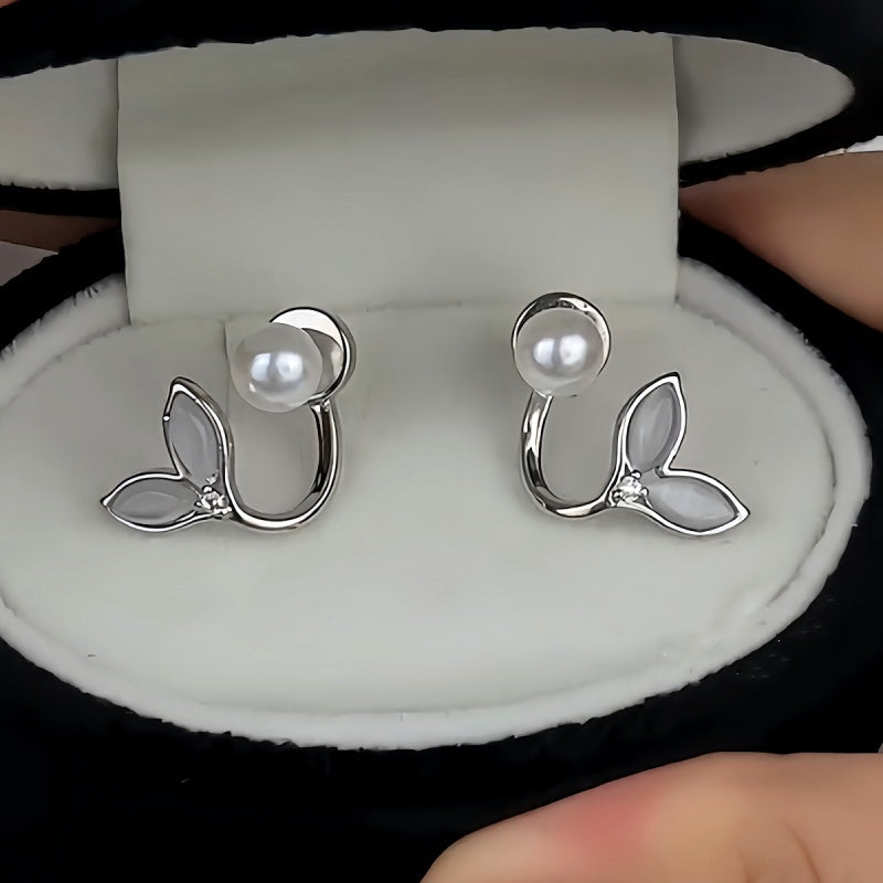 14K Gold-Plated Elegant Pearl Fishtail Earrings