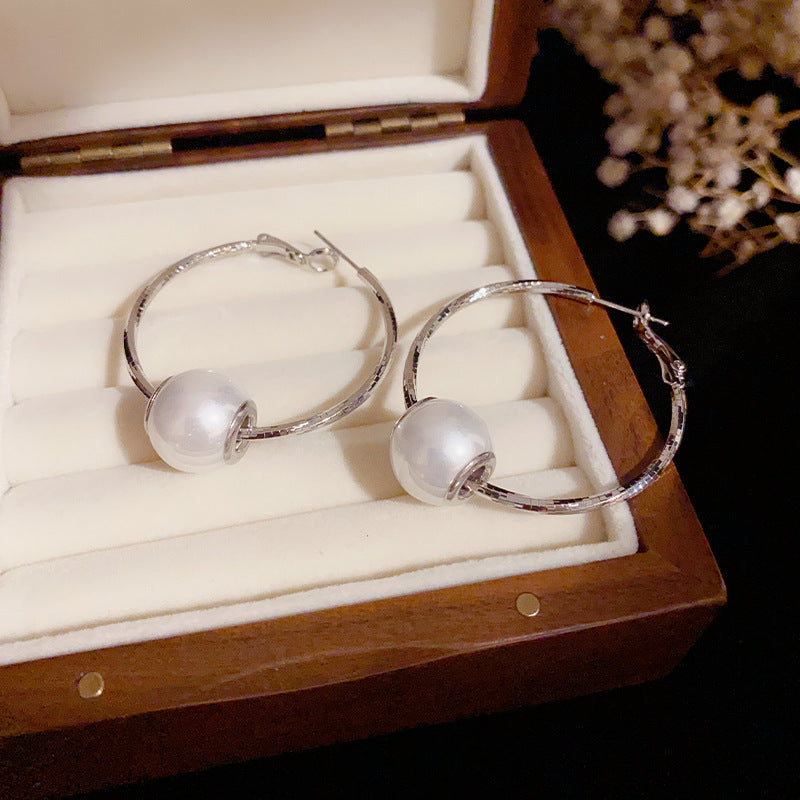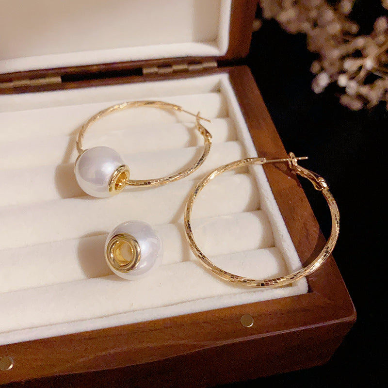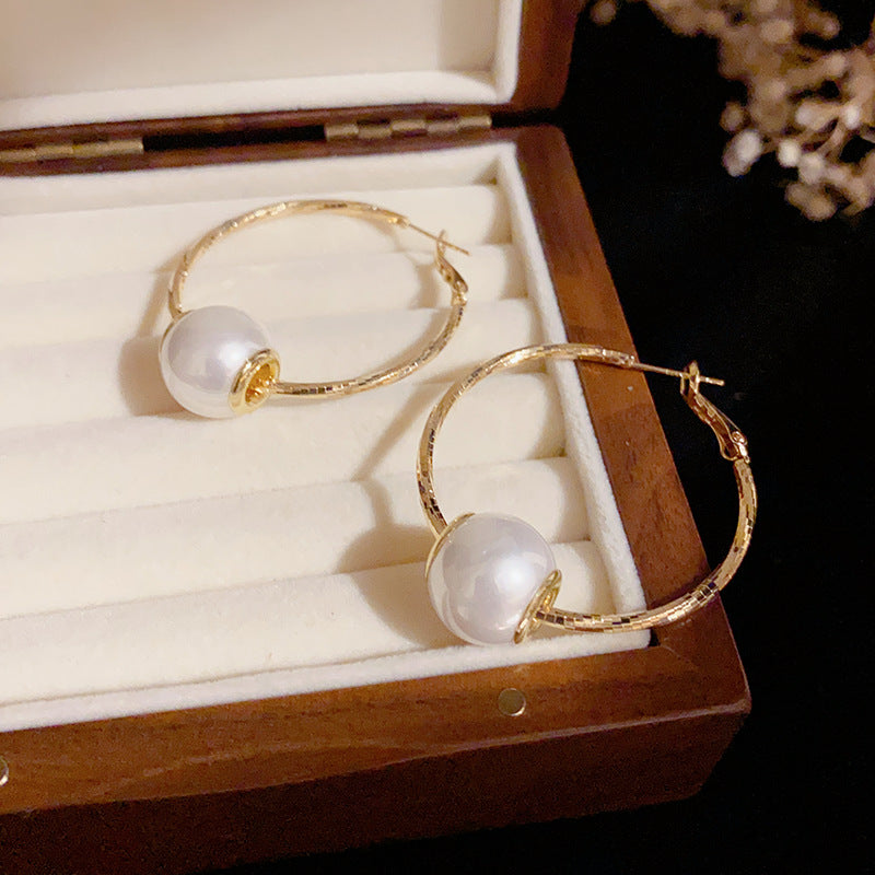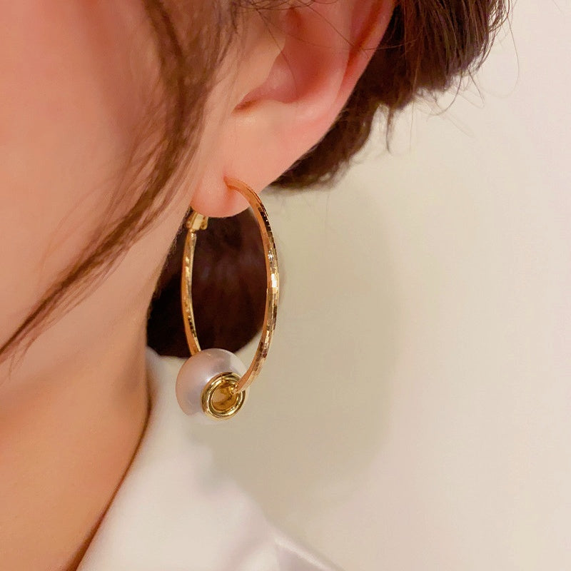 14K Gold-Plated Elegant Pearl Large Hoop Earrings