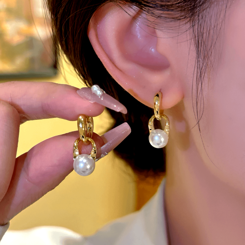 14K Gold-Plated Elegant Pearl Pendant Earrings