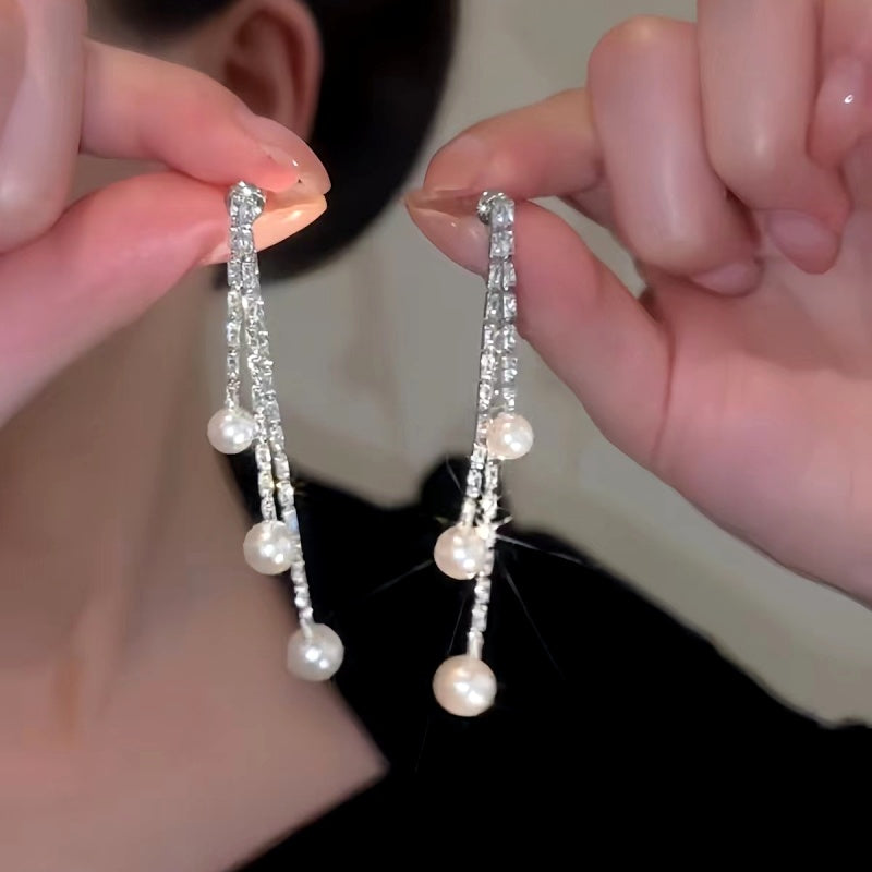 14K Gold-Plated Elegant pearl Tassel Earrings