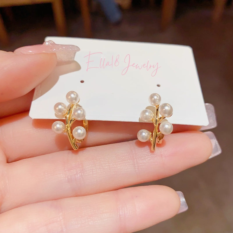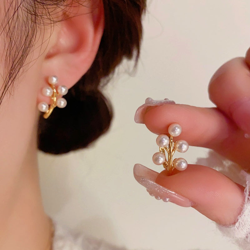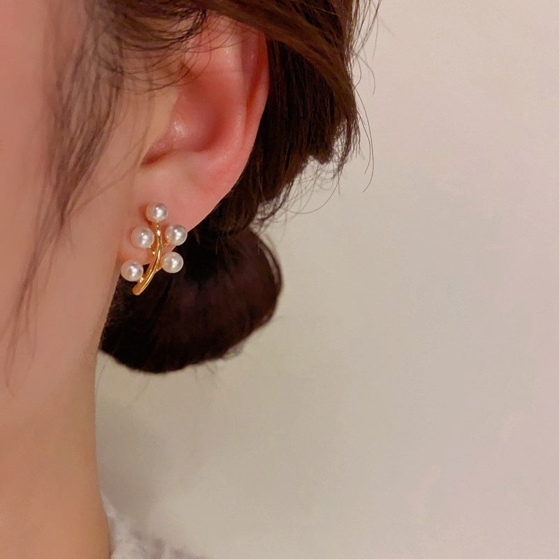 14K Gold-Plated Elegant Petite Bead Leaf Studs