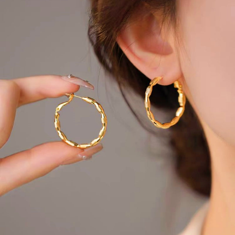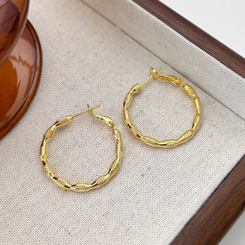 14K Gold-Plated Elegant Plain Hoop Earrings