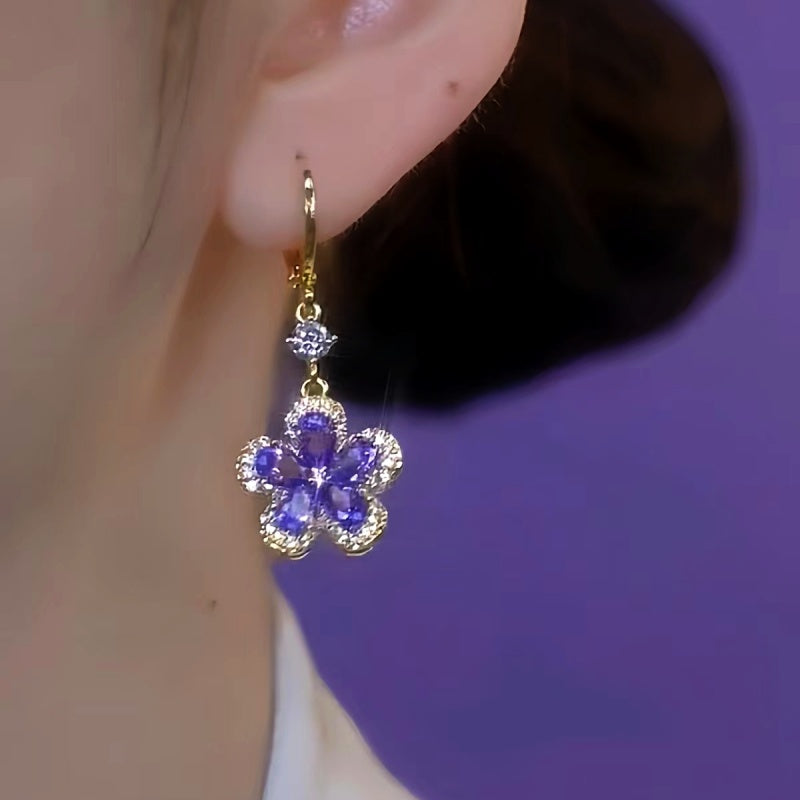14K Gold-Plated Elegant Purple Crystal Flower Earrings