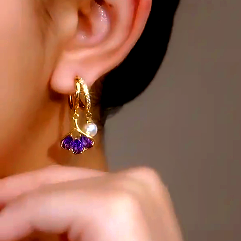 14K Gold-Plated Elegant Purple Leaf Pear Earrings