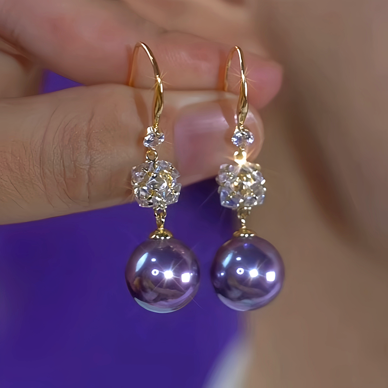 14K Gold-Plated Elegant Purple Pearl Zircon Earrings