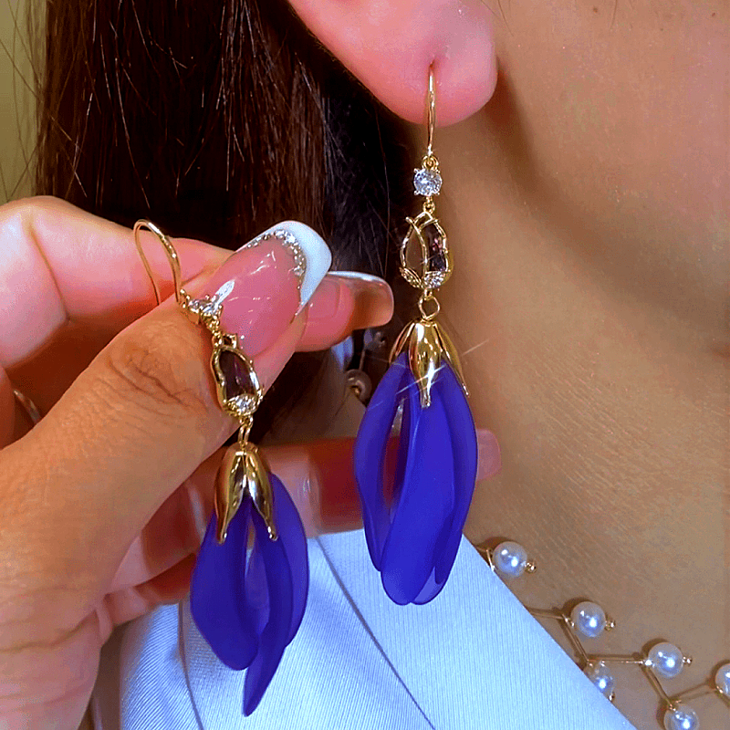14K Gold-Plated Elegant Purple Tulip Petal Tassel Hook Earrings