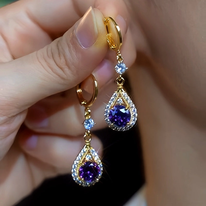 14K Gold-Plated Elegant Purple Zircon Earrings
