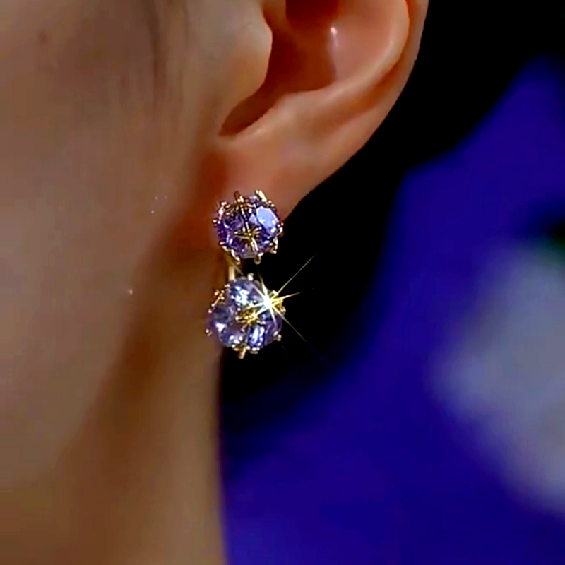 14K Gold-Plated Elegant Purple Zircon Square Earrings