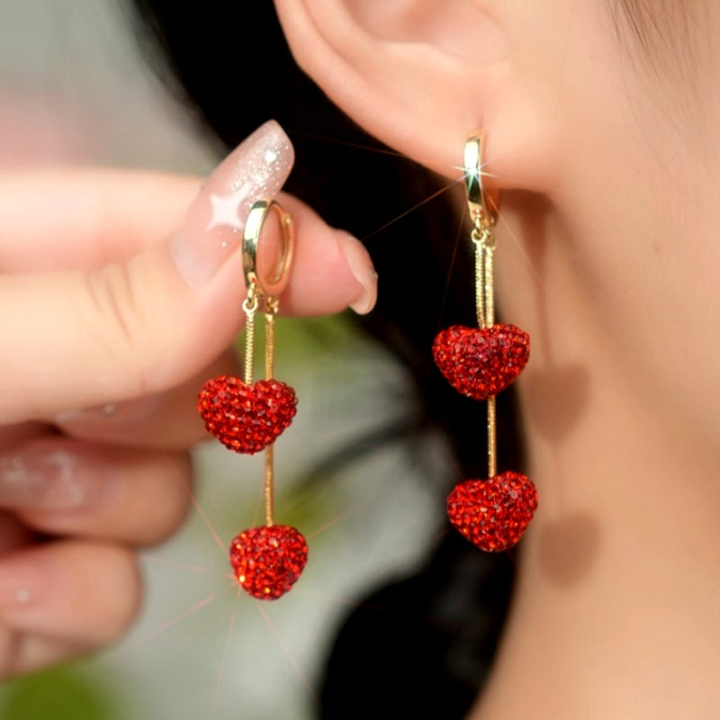 14K Gold-Plated Elegant Red Heart Earrings