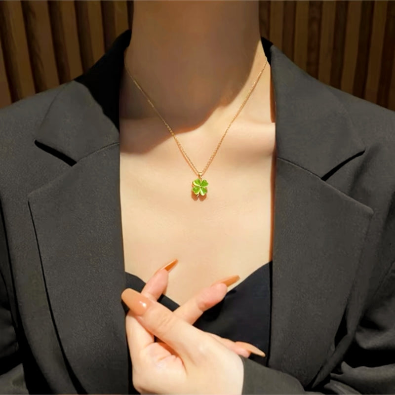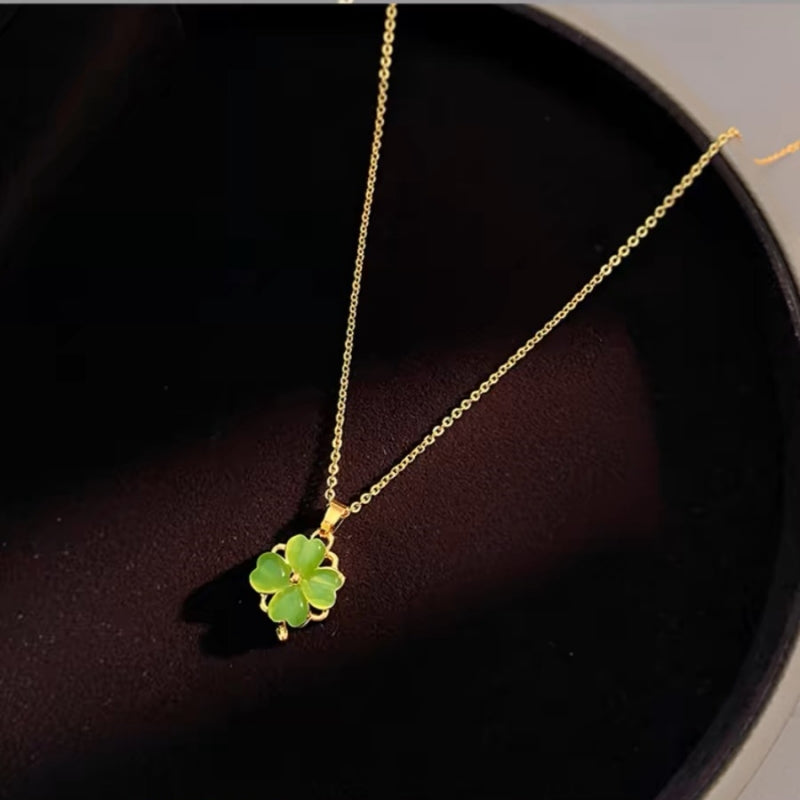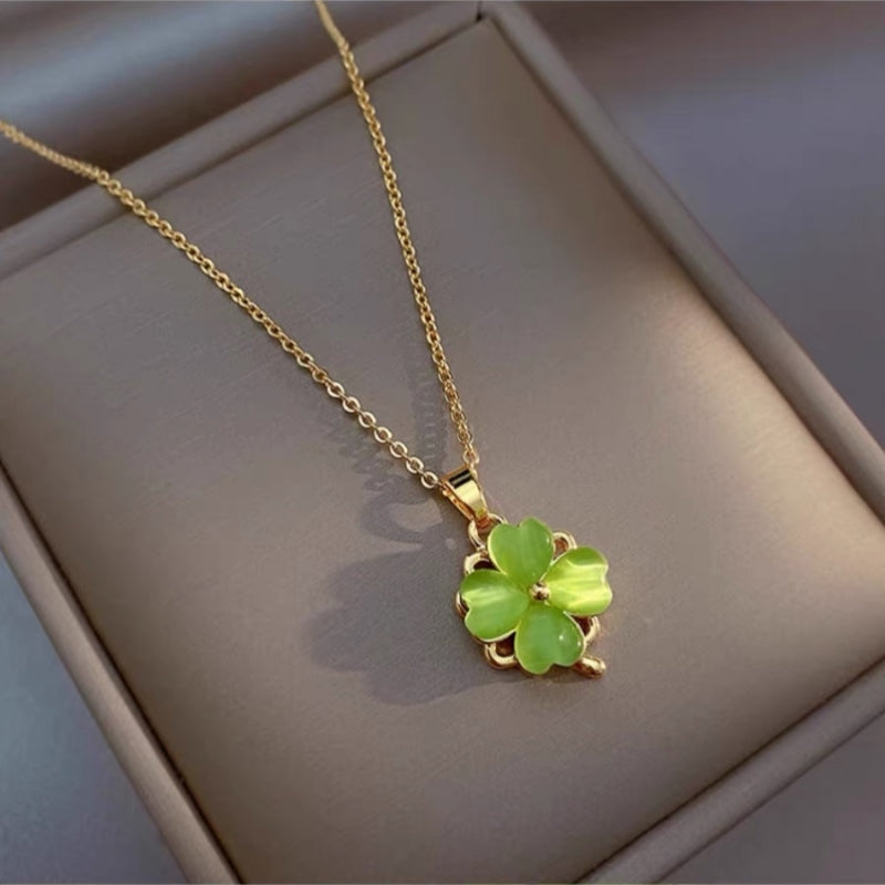 14K Gold-Plated Elegant Rotating Green Opal Flower Necklaces