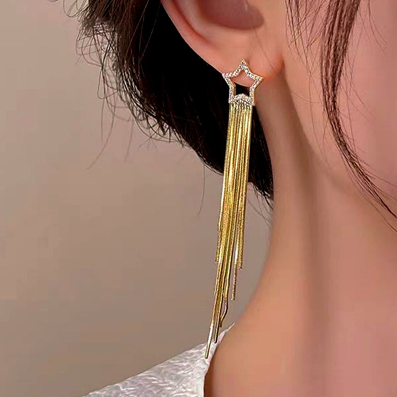 14K Gold-Plated Elegant Star Tassel Earrings