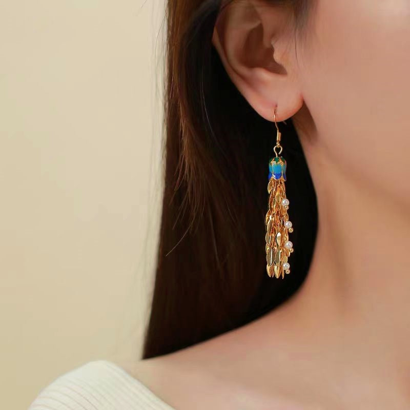14K Gold-Plated Elegant Wheat Ear Pearl Tassel Earrings