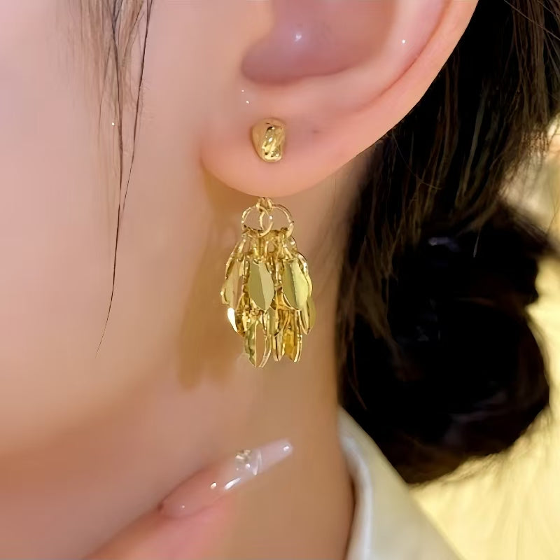 14K Gold-Plated Elegant Wheat Tassel Earrings