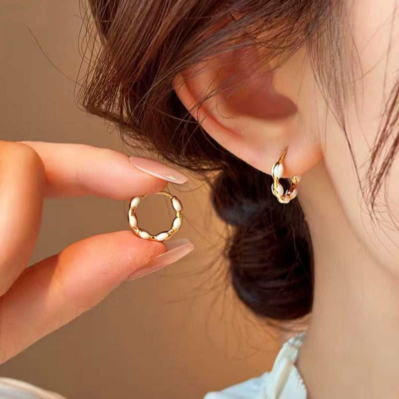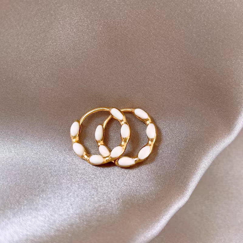 14k Gold-Plated Elegant White Drop Glaze Hoop Earrings