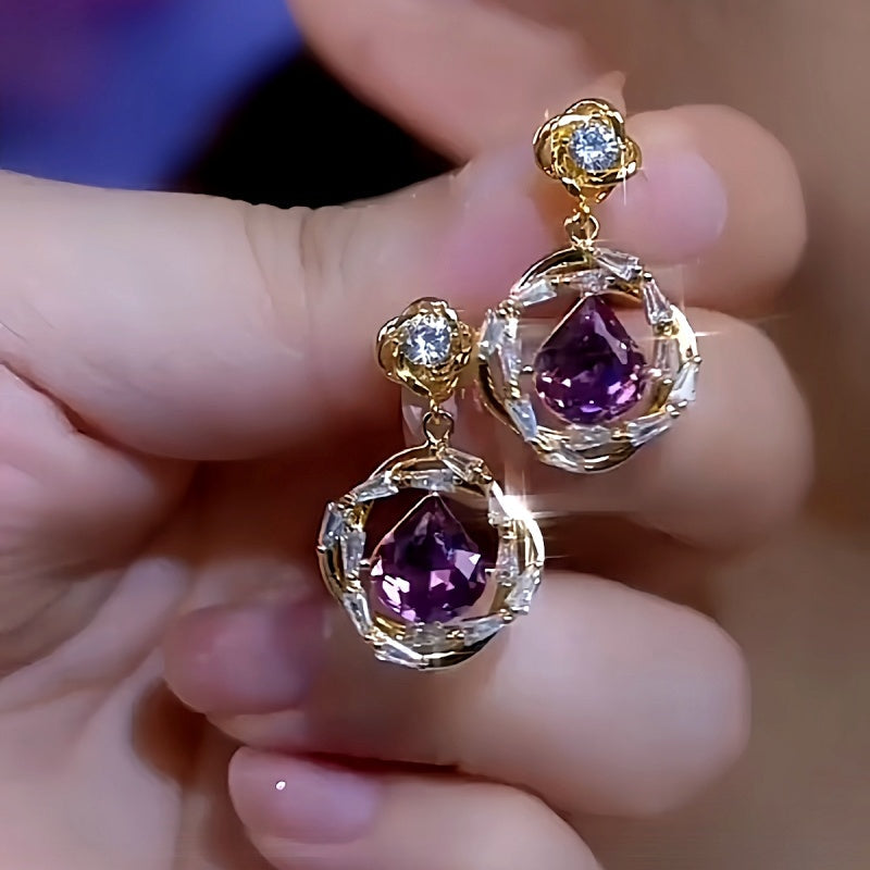 14K Gold-Plated Elegant Winding Purple Diamond Earrings