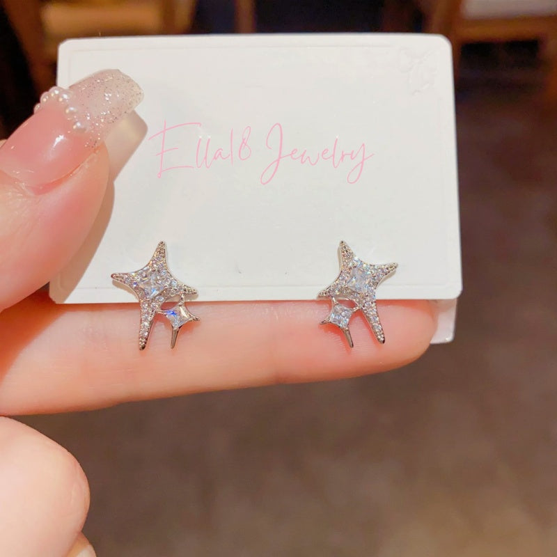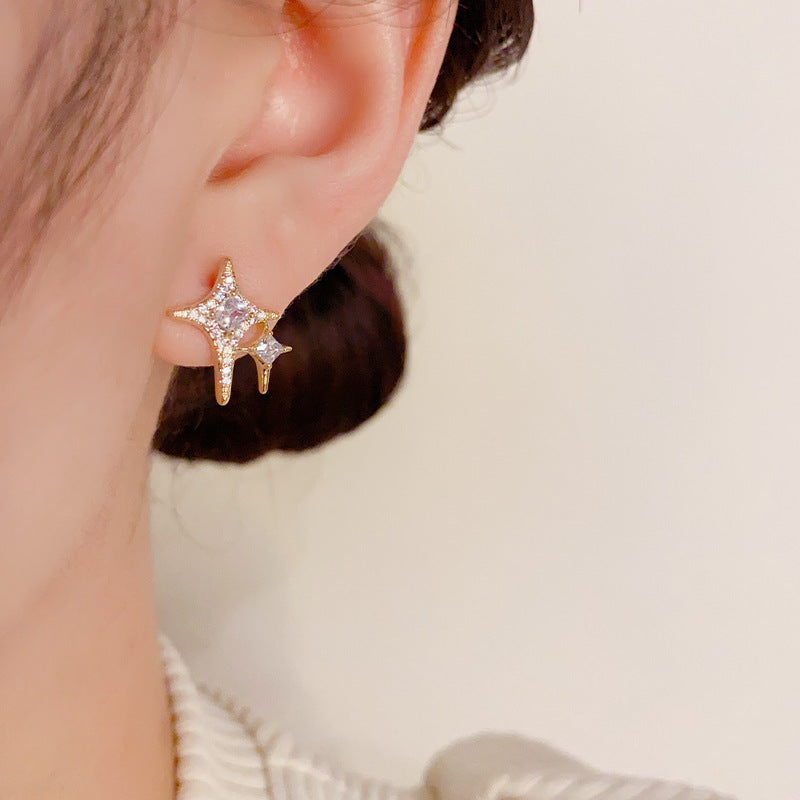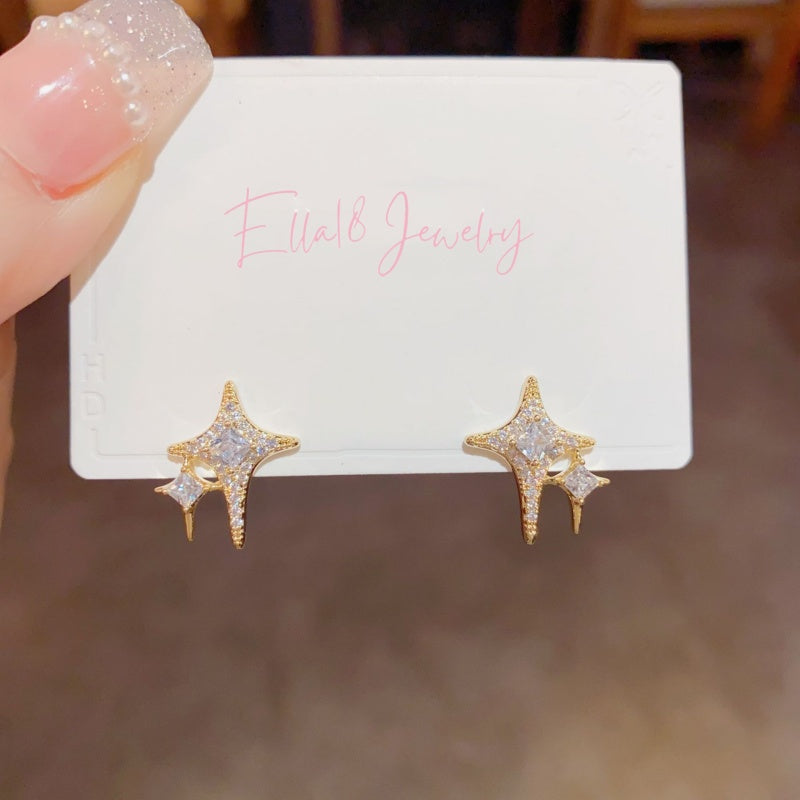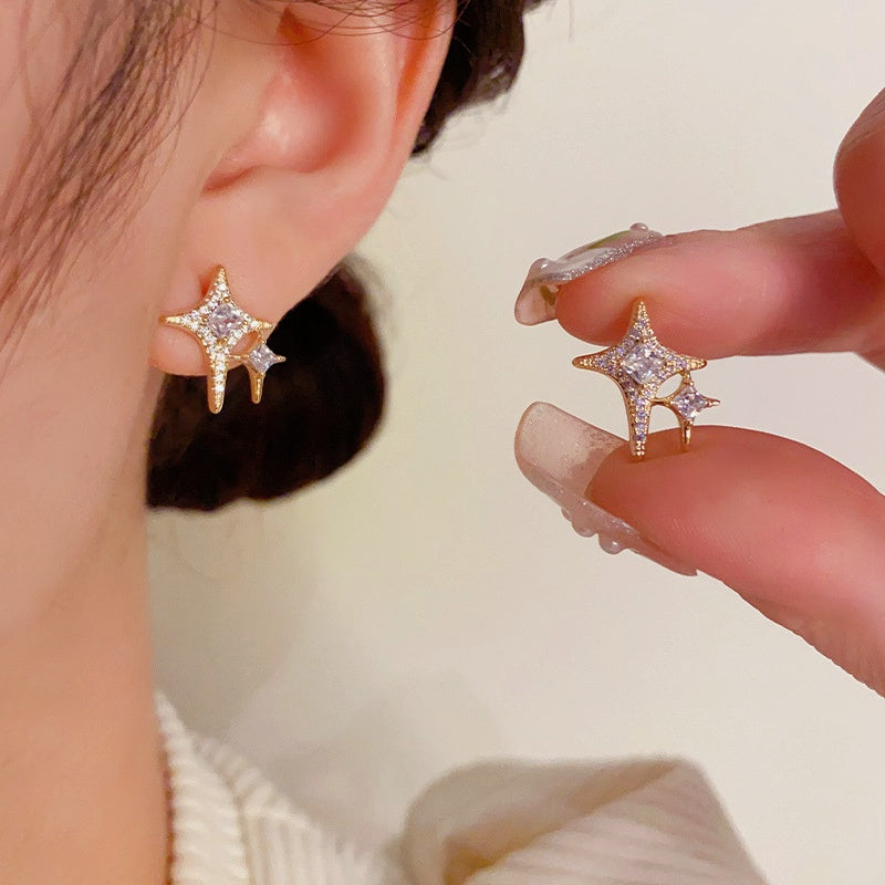 14K Gold-Plated Elegant Zircon Bling Star Studs
