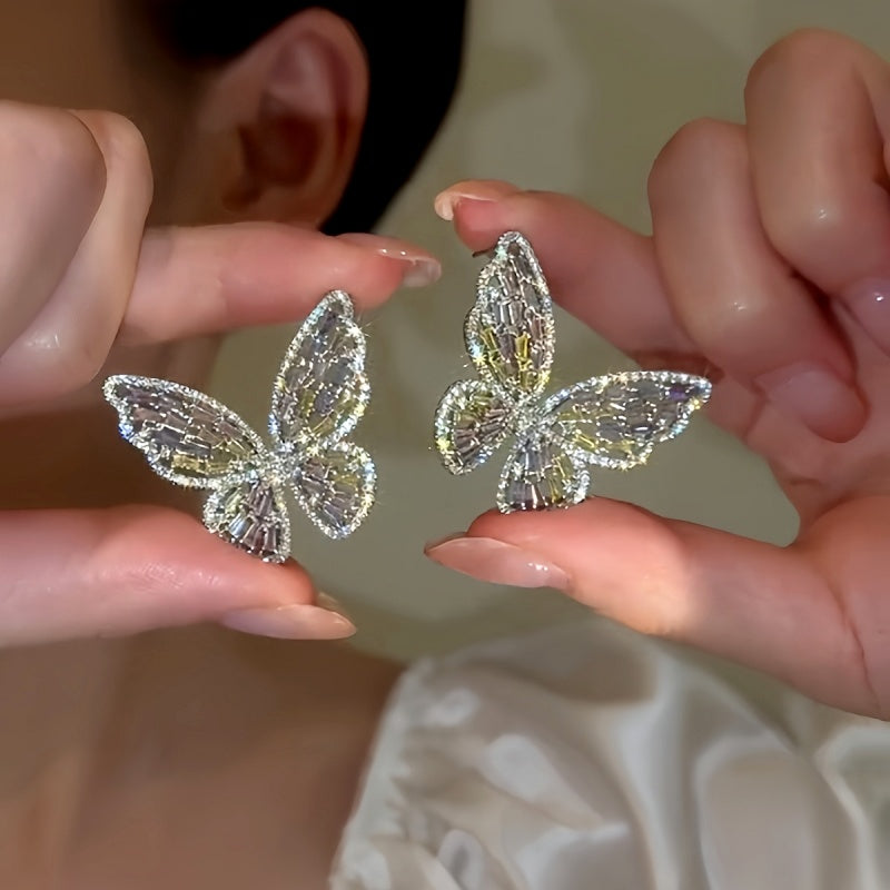 14K Gold-Plated Elegant Zircon Butterfly Earrings