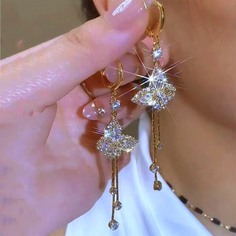 14K Gold-Plated Elegant Zircon Butterfly Earrings