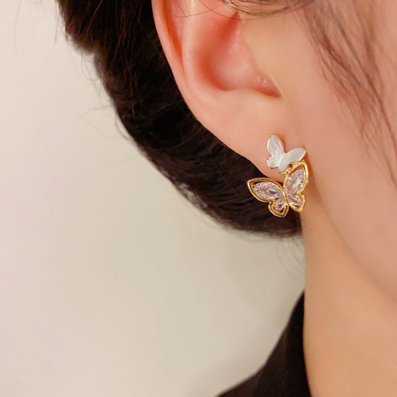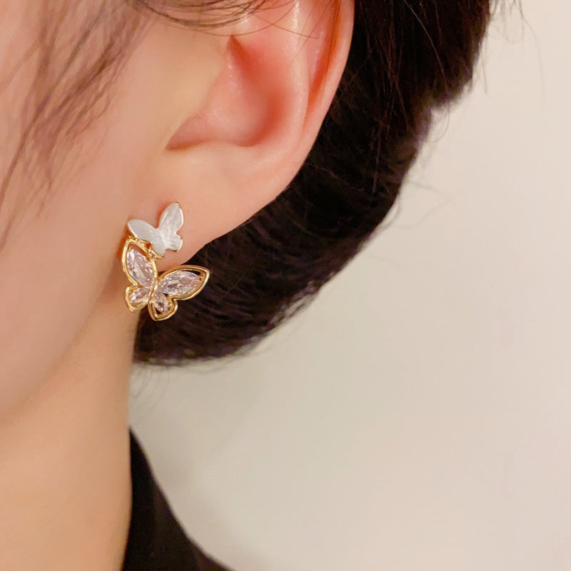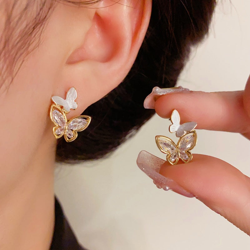 14K Gold-Plated Elegant Zircon Butterfly Earrings
