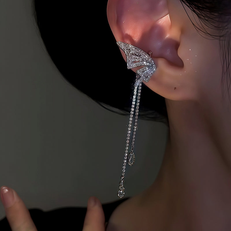 14K Gold-plated Elegant Zircon Butterfly Tassel Ear Clips ( 1 Pair )