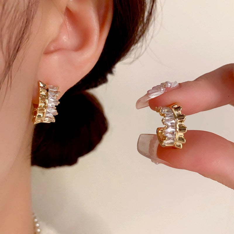 14K Gold-Plated Elegant Zircon C-Shaped Earrings