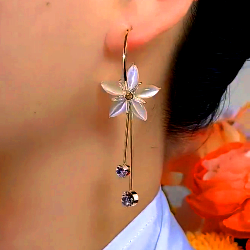 14K Gold-Plated Elegant Zircon Cat's Eye Flower Earrings