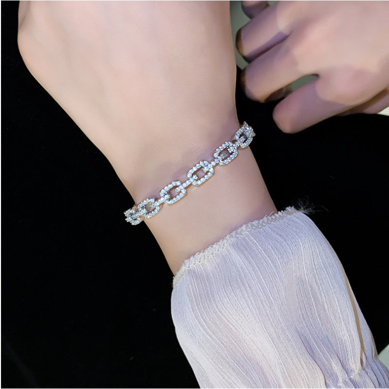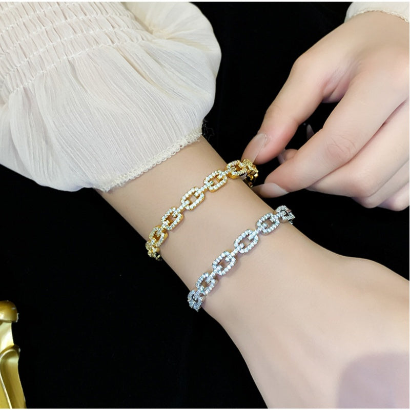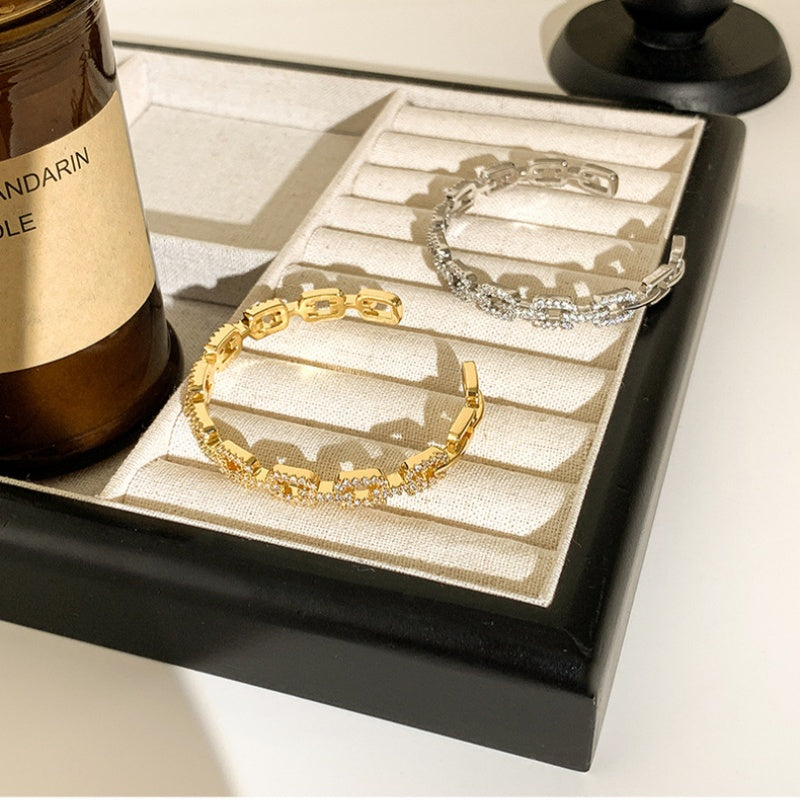 14K Gold-Plated Elegant Zircon Chain Open Bracelets