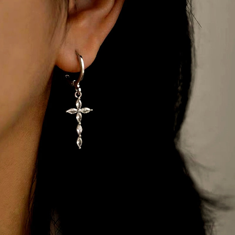 14K Gold-Plated Elegant Zircon Cross Earrings