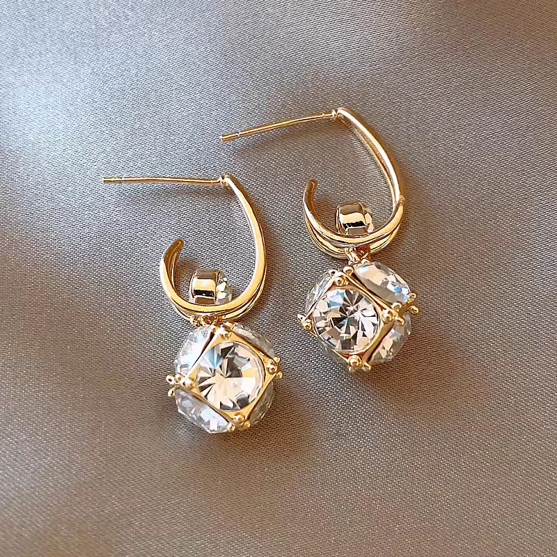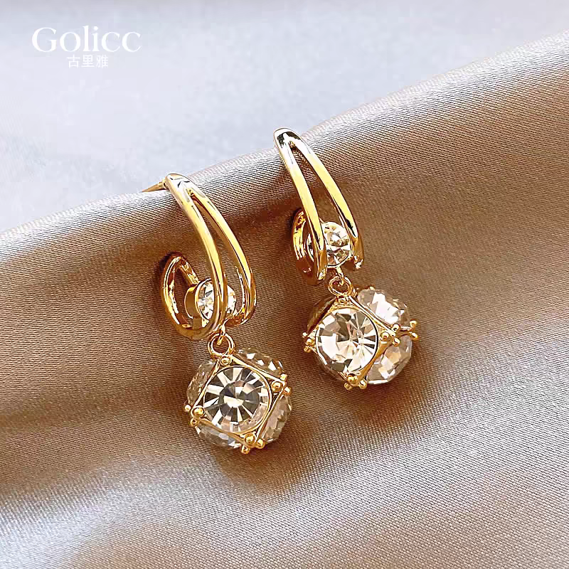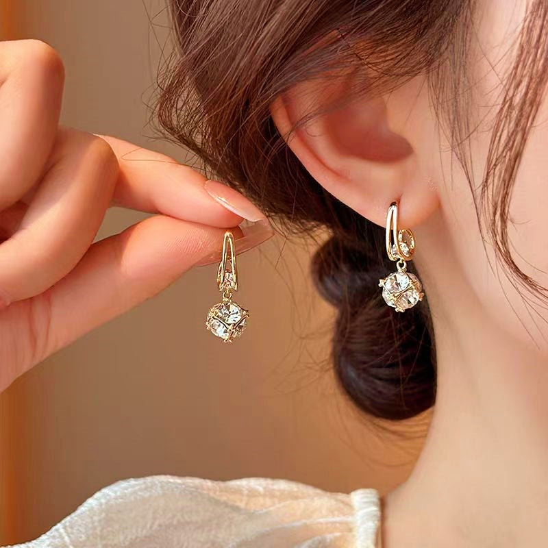 14k Gold-Plated Elegant Zircon Diamond Ball Earrings