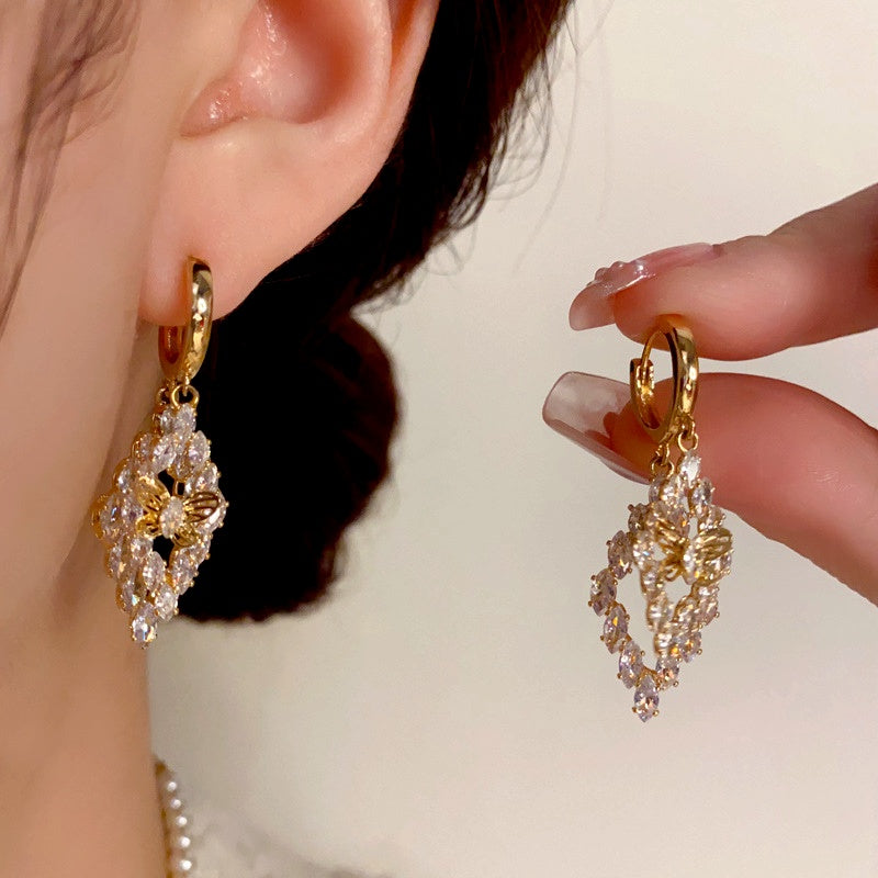 14K Gold-Plated Elegant Zircon Double-Layer Butterfly Earrings