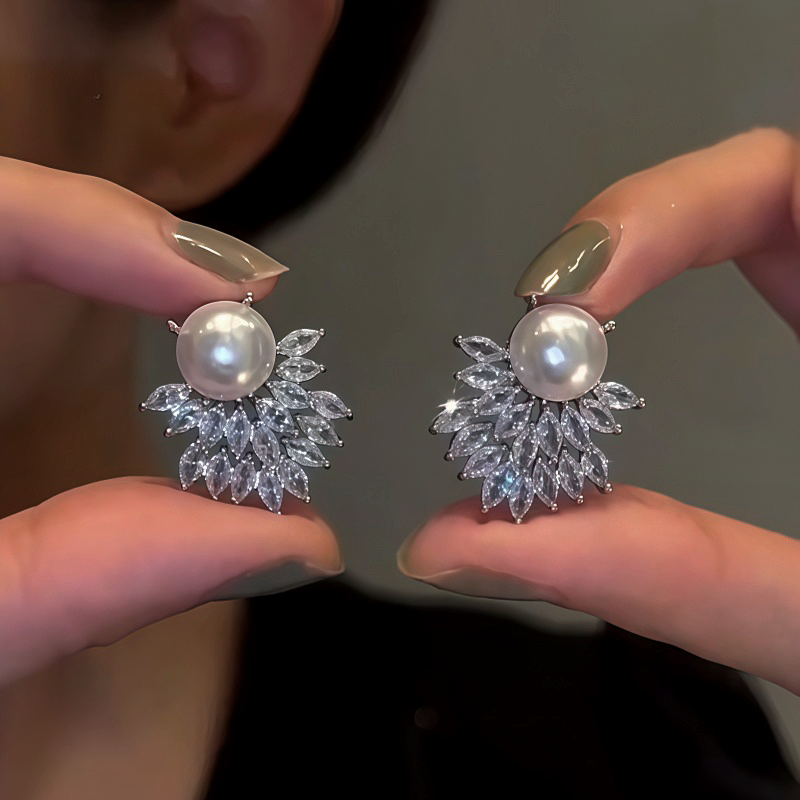 14K Gold-Plated Elegant Zircon Double-Layer Pearl Earrings
