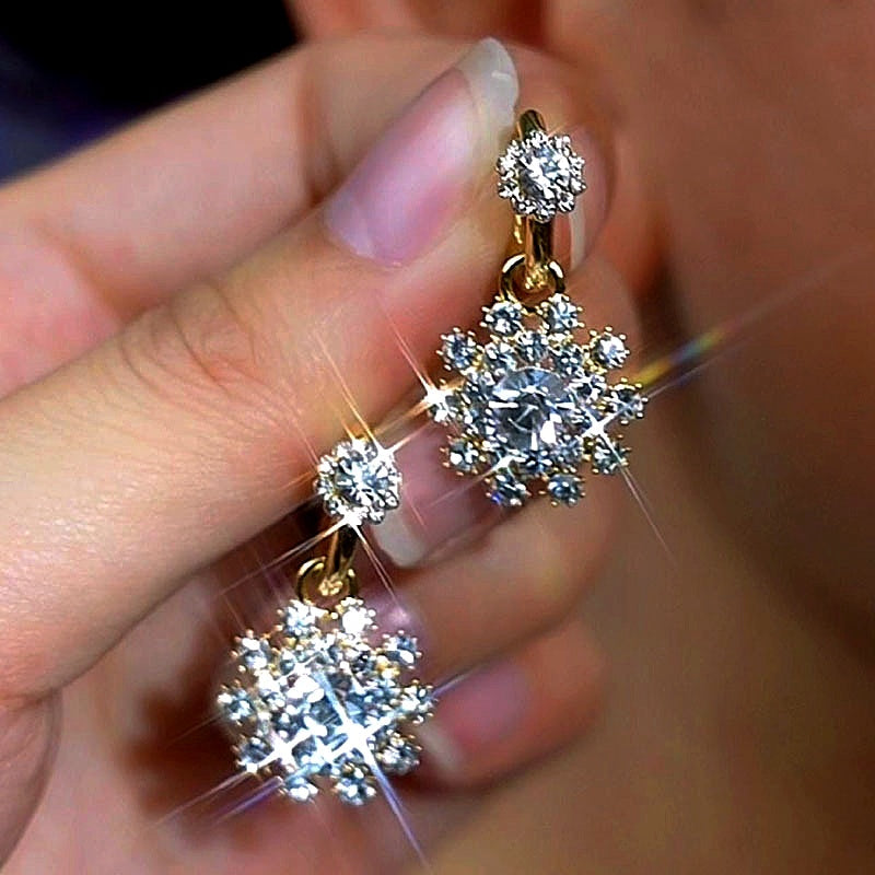 14K Gold-Plated Elegant Zircon Flower Earrings