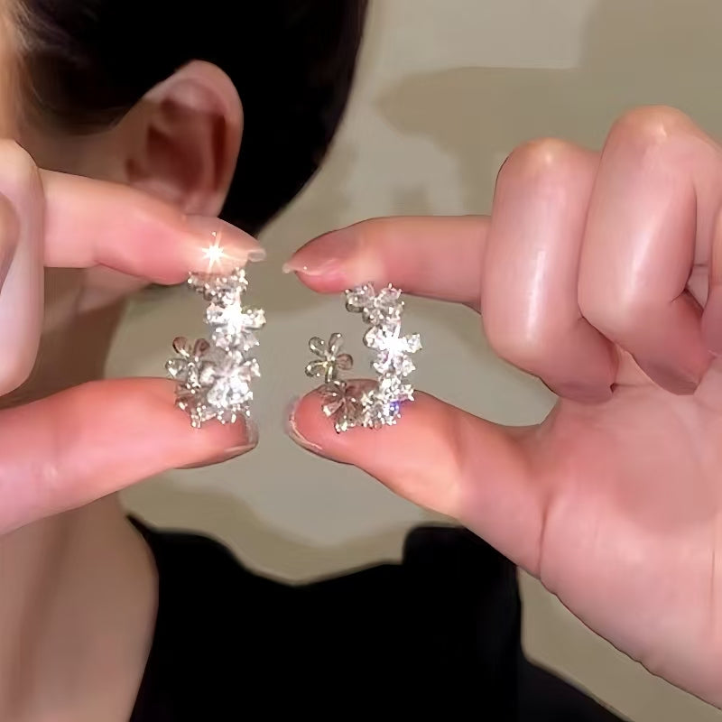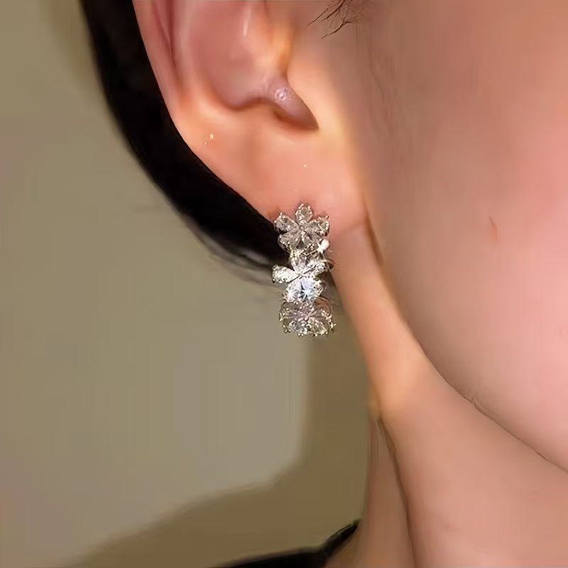 14K Gold-Plated Elegant Zircon Flower Earrings