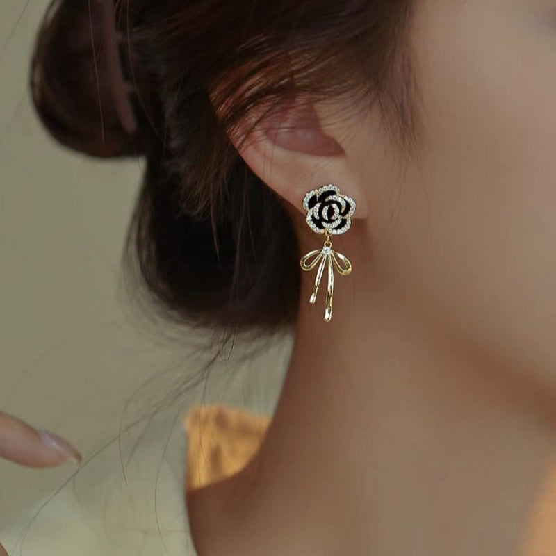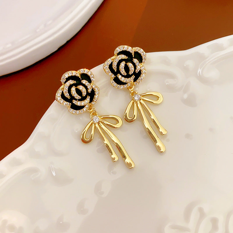 14K Gold-Plated Elegant Zircon Flower Earrings