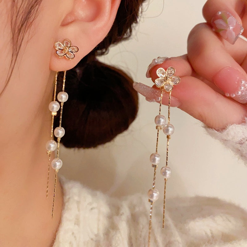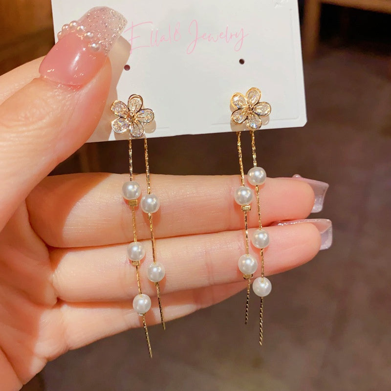14K Gold-Plated Elegant Zircon Flower Pearl Earrings