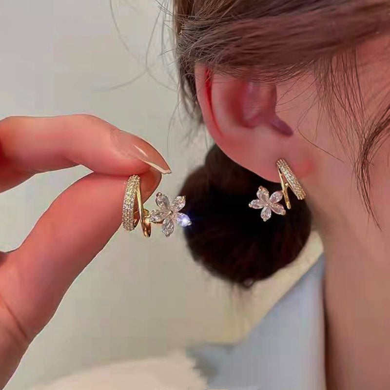 14K Gold-plated Elegant Zircon Flower Studs