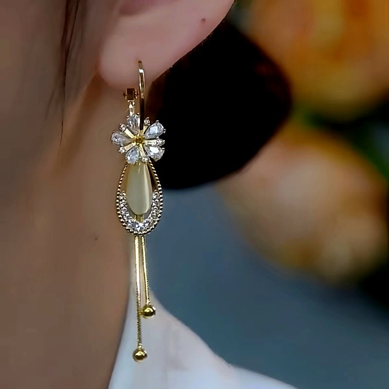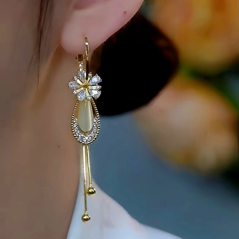 14K Gold-Plated Elegant Zircon Flower Water Drop Tassel Earrings