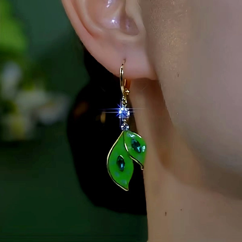 14K Gold-Plated Elegant Zircon Green Leaf Earrings