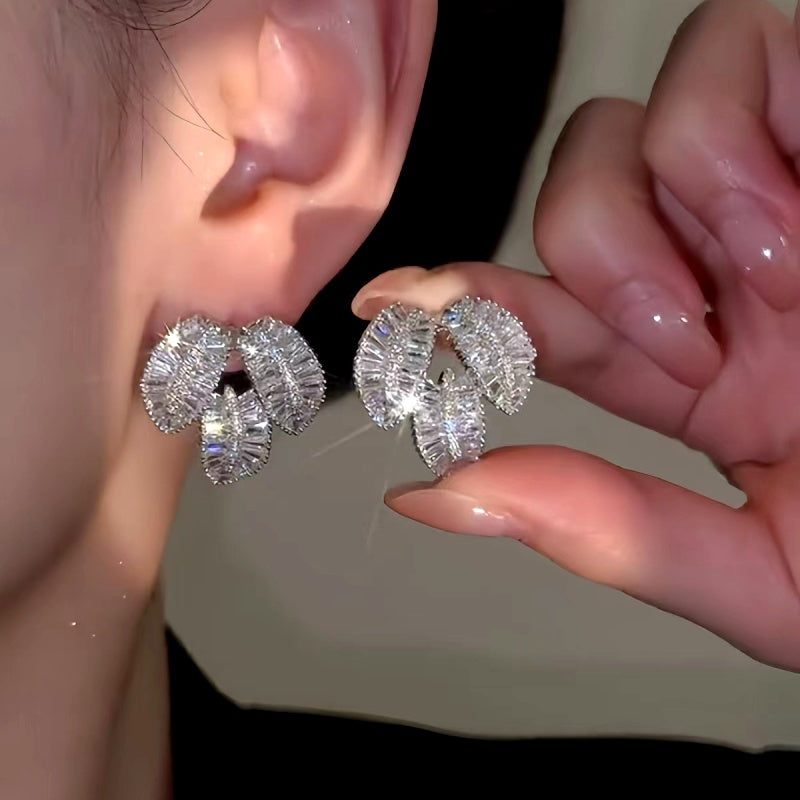 14K Gold-Plated Elegant Zircon Leaf Earrings