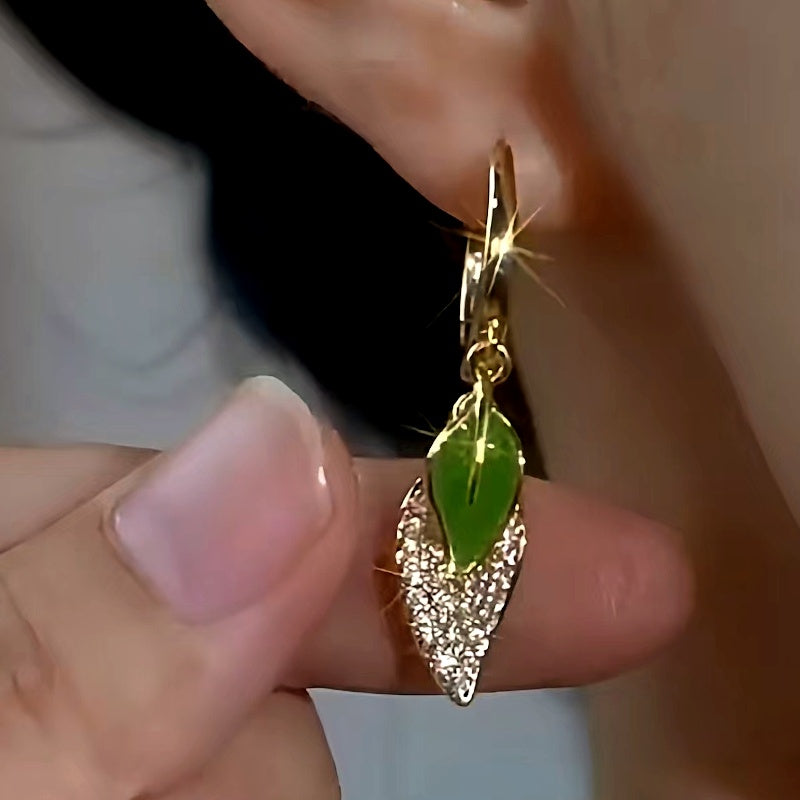 14K Gold-Plated Elegant Zircon Leaf Earrings